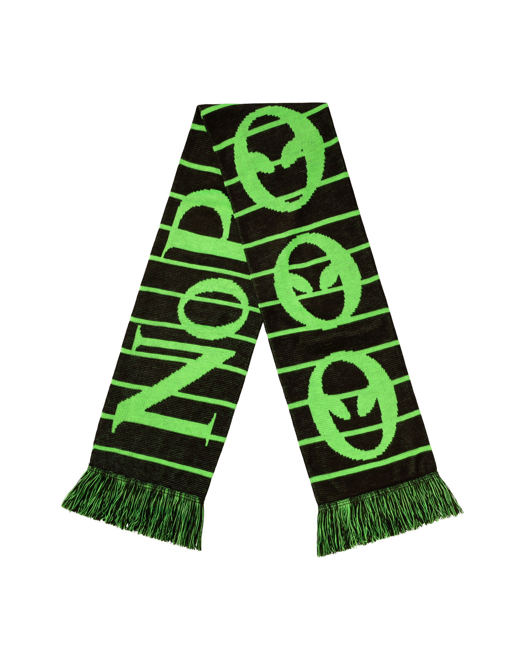 KNITTED ACRYLIC FOOTBALL-STYLE SCARF WITH A NO PROBLEMO INTARSIA DESIGN AND FRINGED ENDS