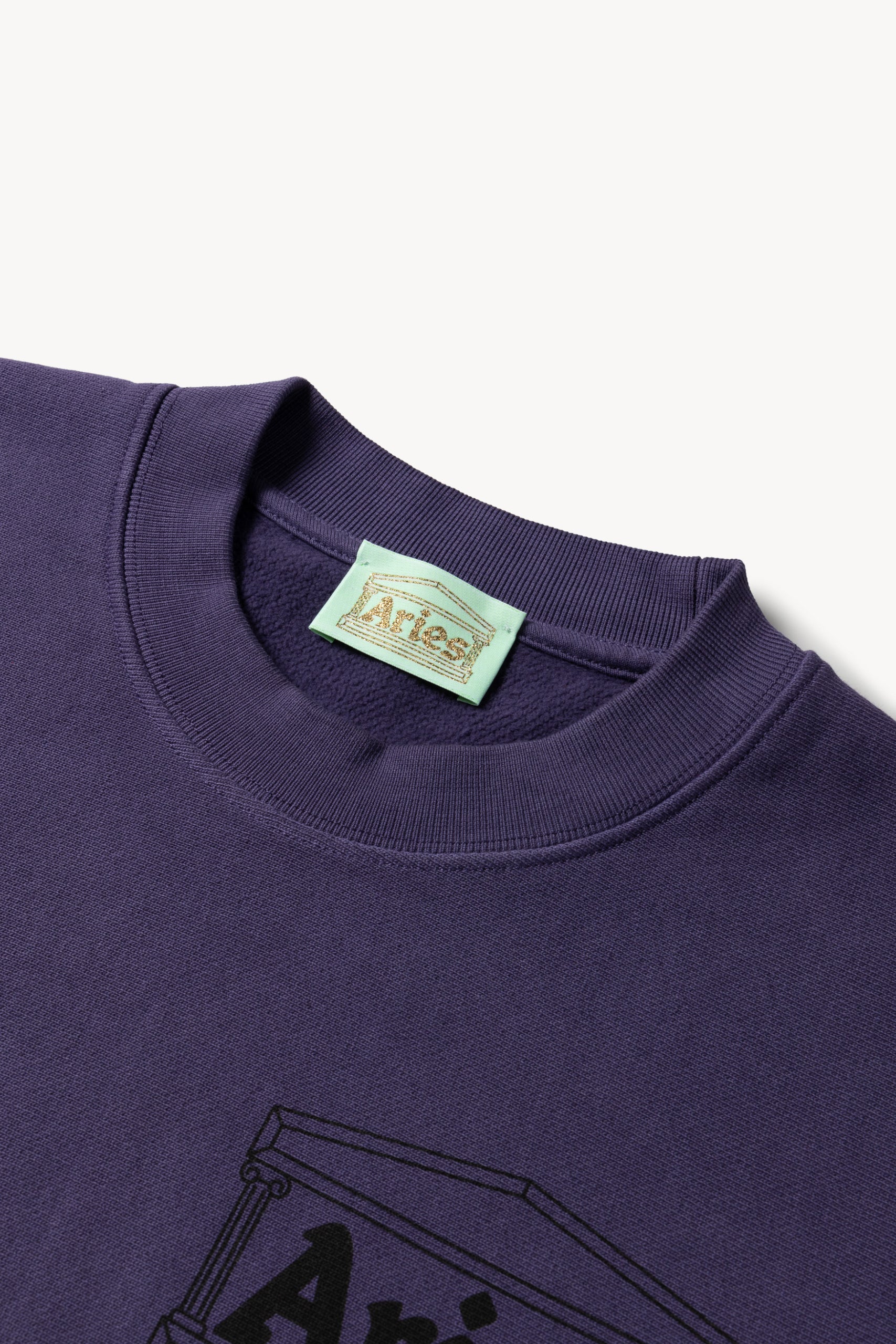 Unisex cross-grain crew neck sweatshirt featuring a screen-printed Aries Temple logo on the chest. Made in our premium, heavy, brushed-back jersey fleece. With sporty rib panel detailing on both sides. 100% cotton. Made in Italy.