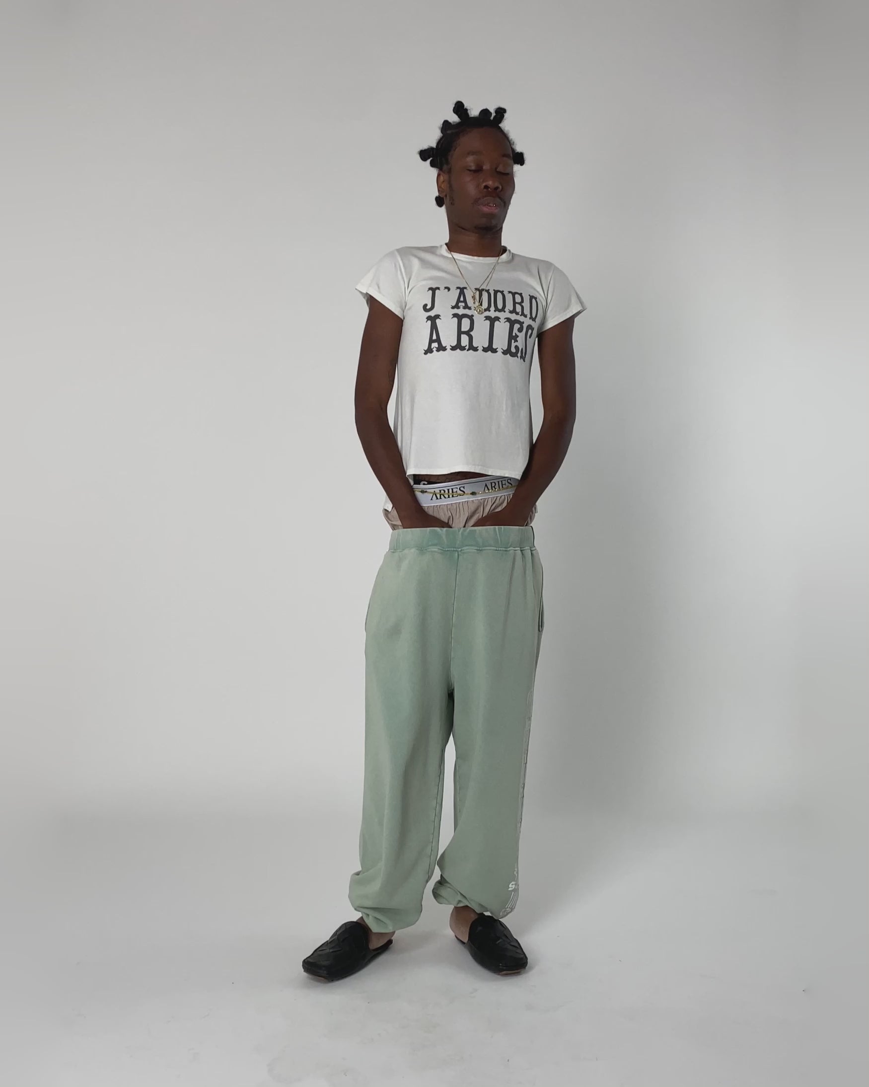 unisex sweatpant made from brushed-back 100% cotton jersey fleece, featuring 'ancient column' graphics screen printed on the leg. finished with a heavy wash treatment for an aged look.