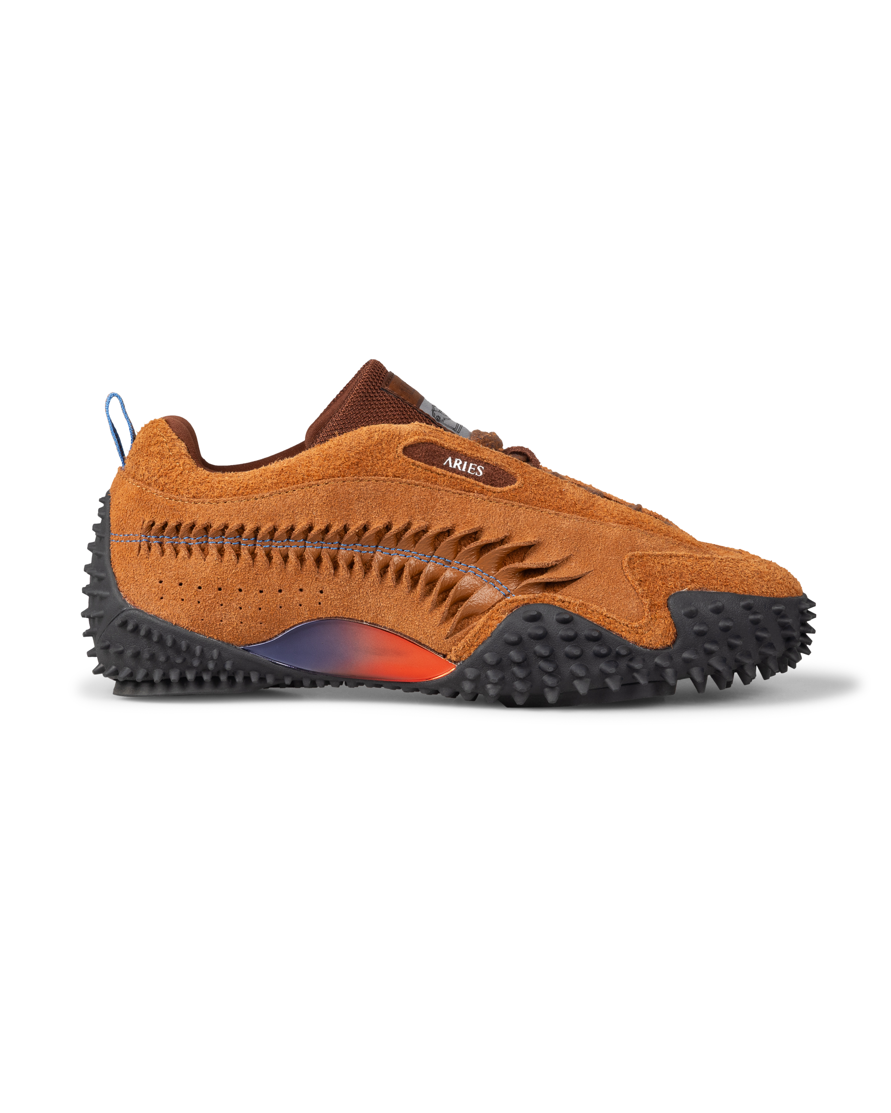 Crafted in suede with a leather-backed twisted Formstrip and silver foil detailing. The mesh lining and lycra tongue provide a flexible, lightweight feel, while the rubber outsole stays true to the iconic Mostro design.