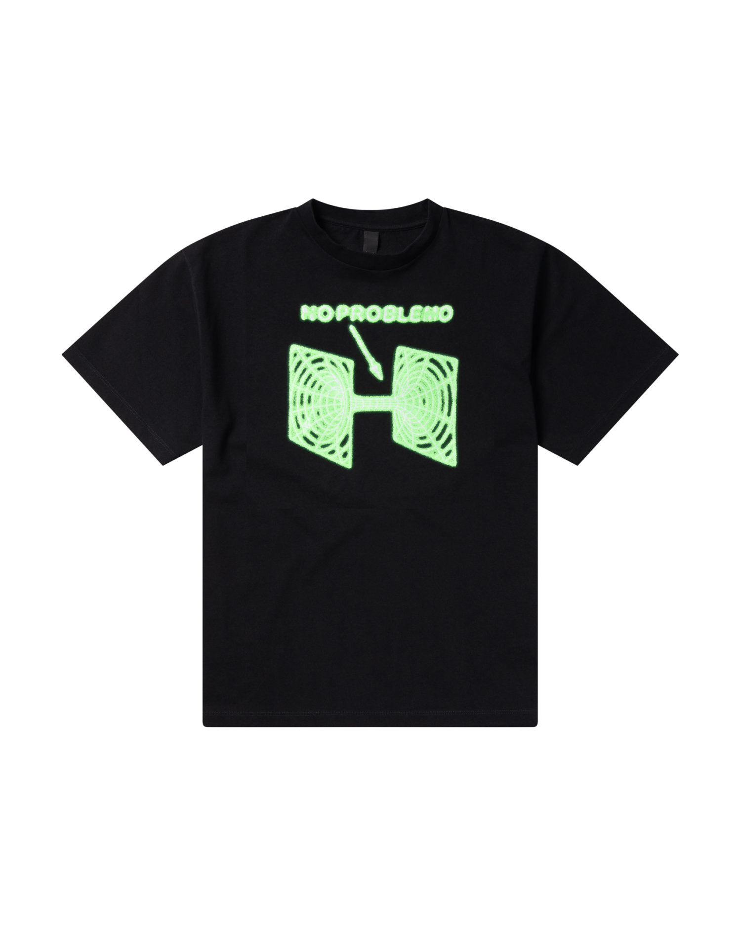 Featuring a classic 'Wormhole' graphic screen printed on the front.