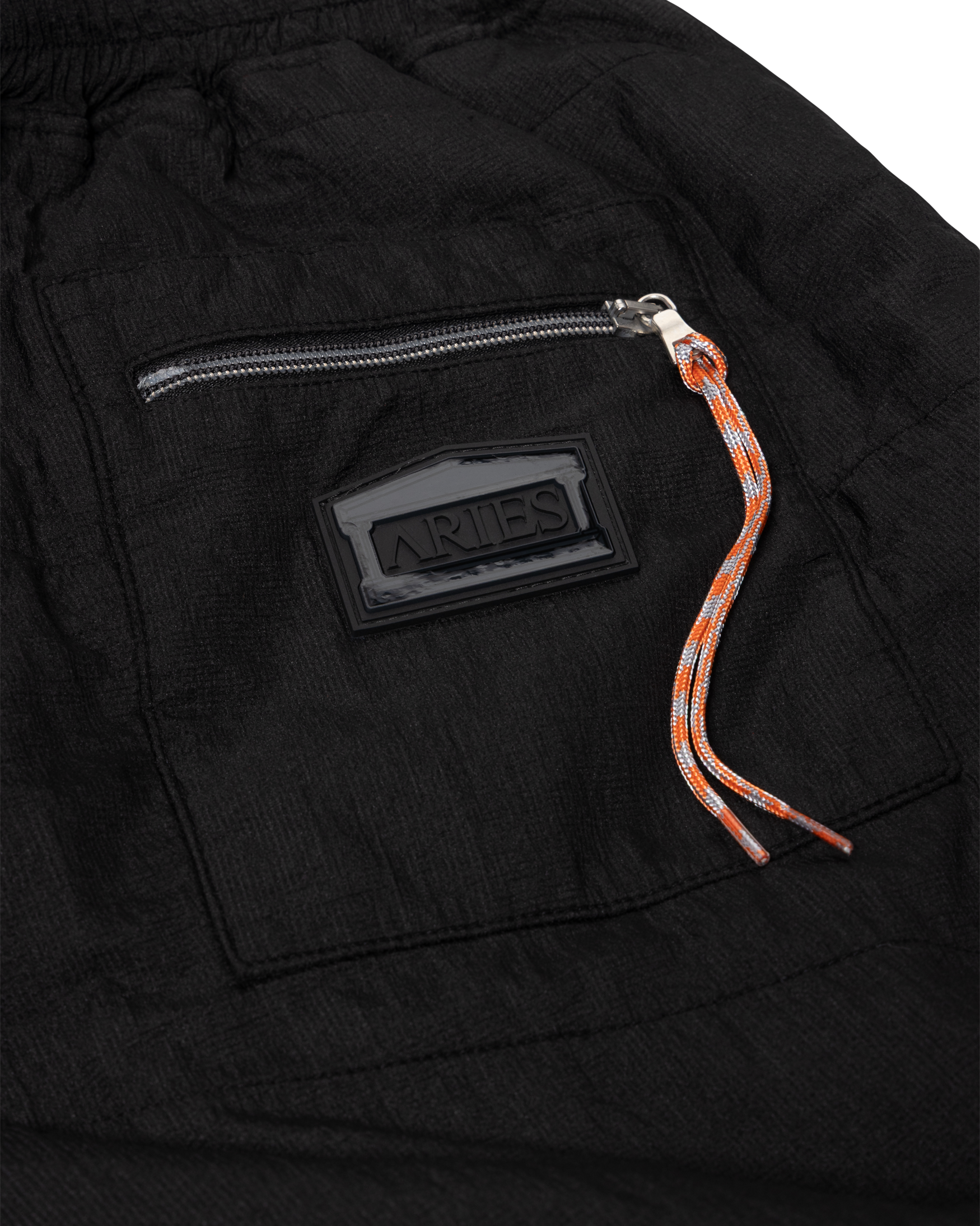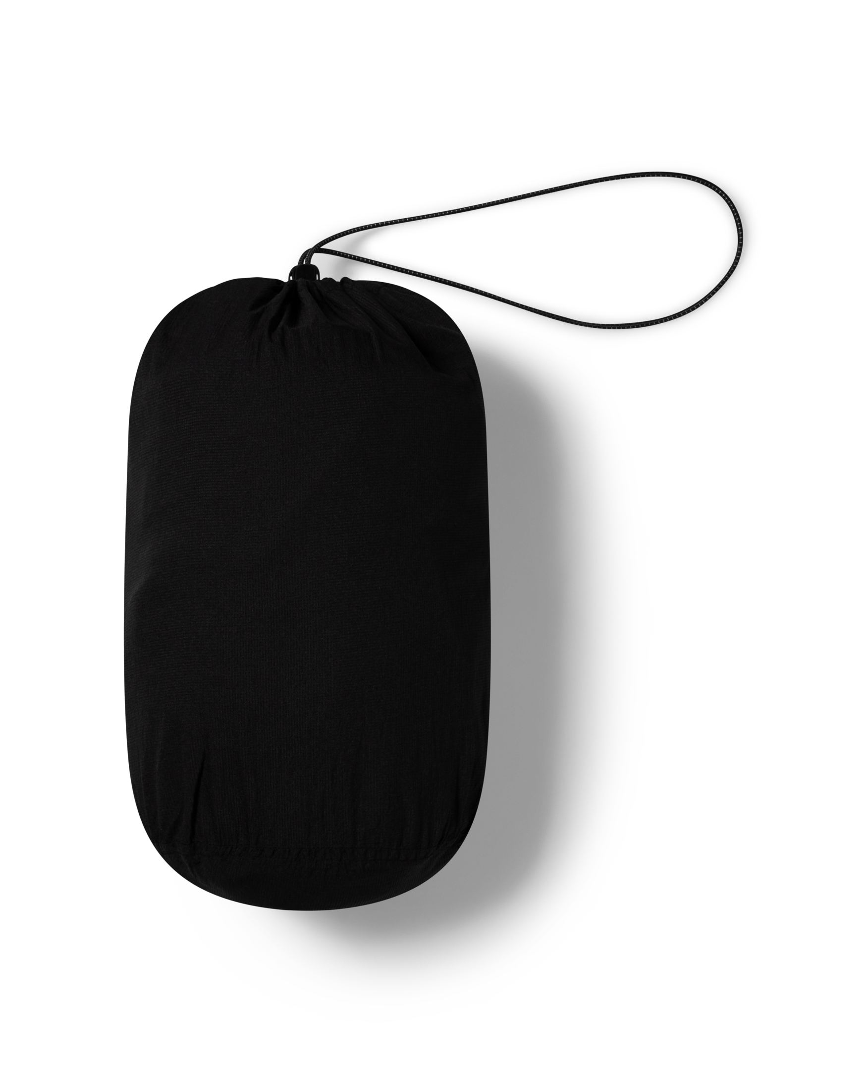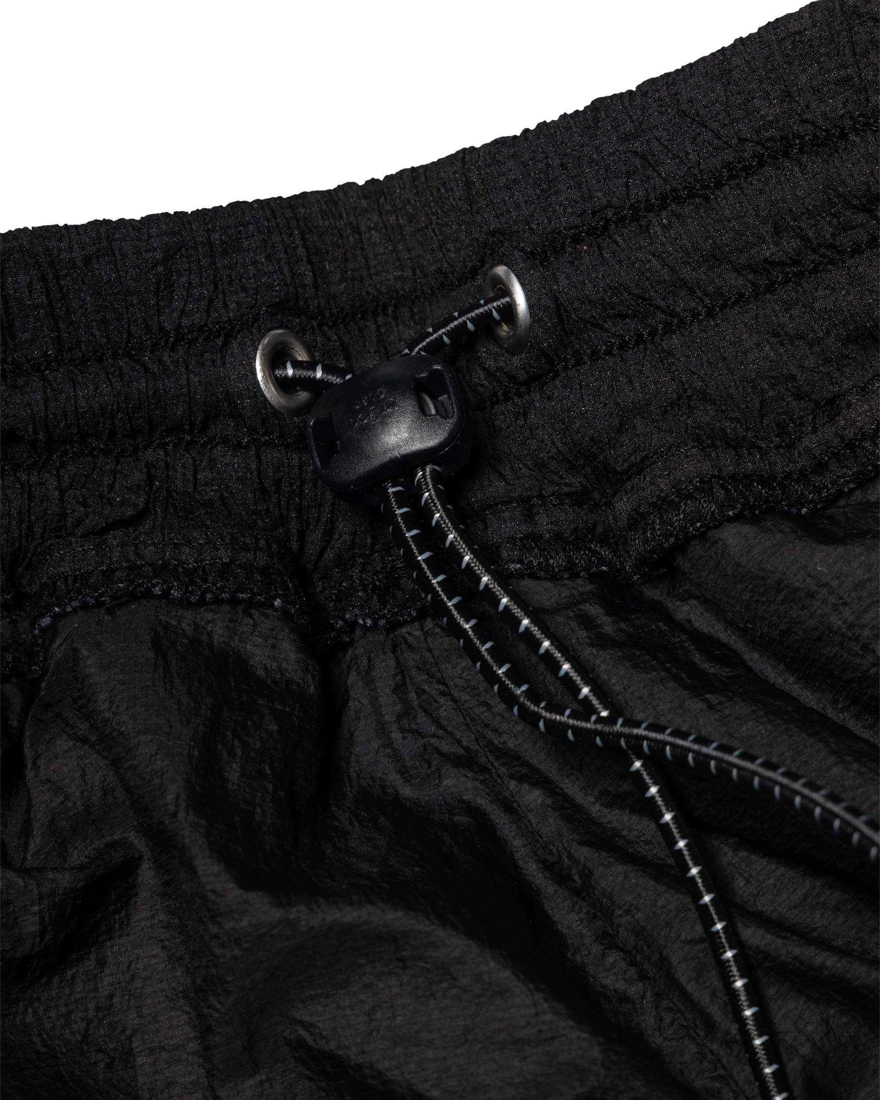 Unisex quilted mini ripstop nylon trackpant with chevron stitch detailing, using sustainable wadding from recycled PET bottles. With an elasticated waistband, ankle toggles and a back zip patch pocket with silicone temple patch. Folds down into its own bag. With a two-colour spray dye finish. 100% nylon.