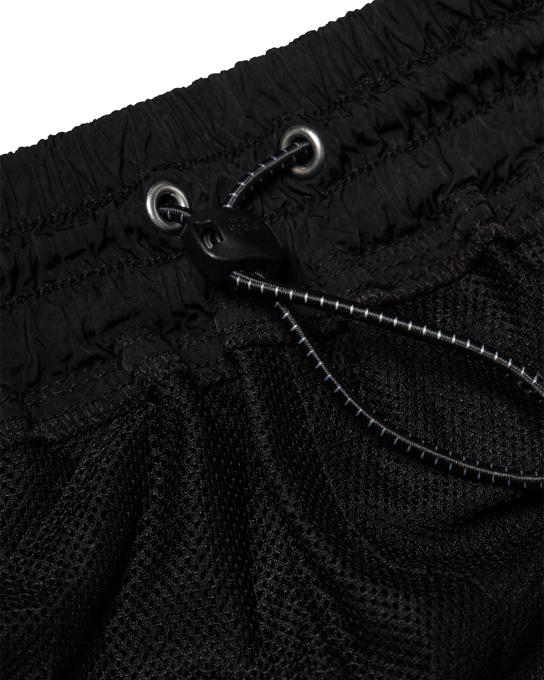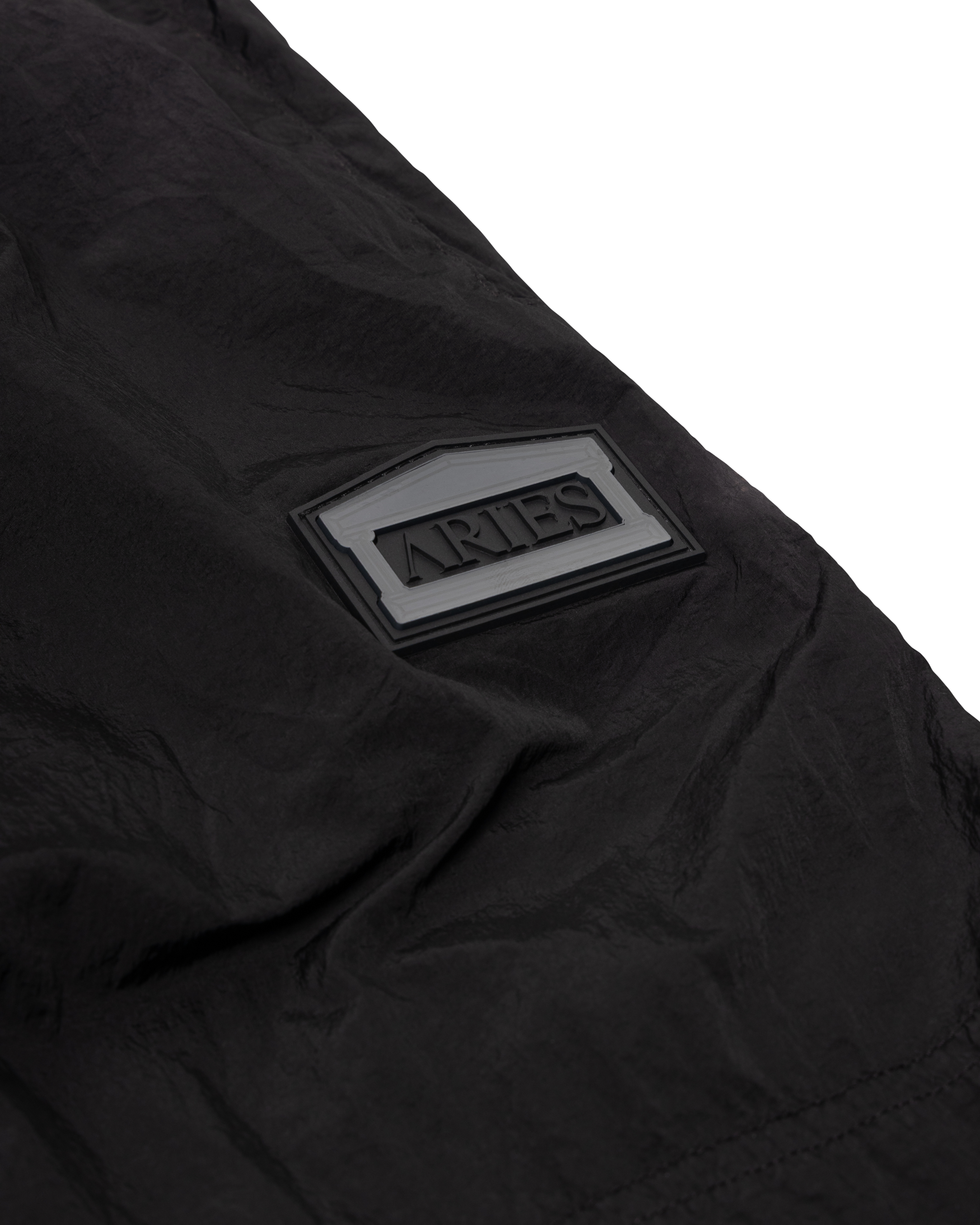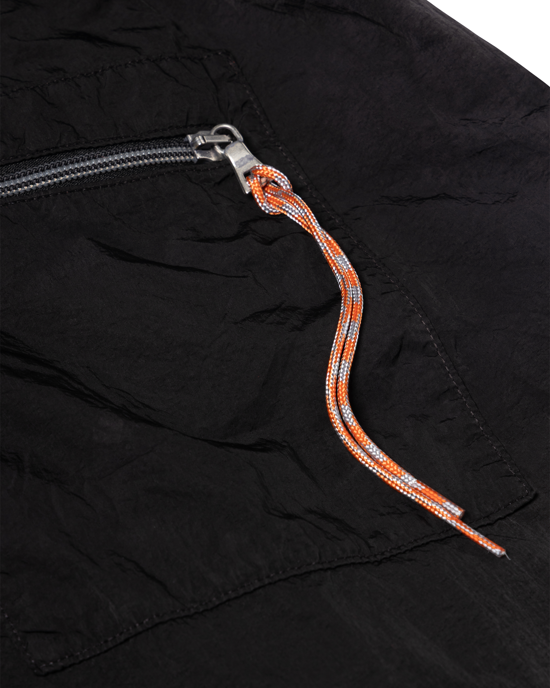 Unisex lightweight nylon track-pant with elasticated waistband, ankle toggles, reinforced knees and zip patch pocket on the back. With vintage flat-lock stitch detail and silicone temple patch. Finished with a rag dye treatment.