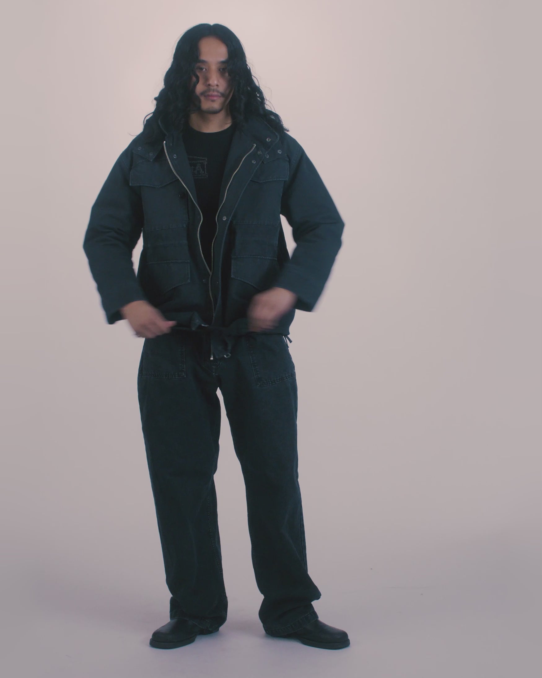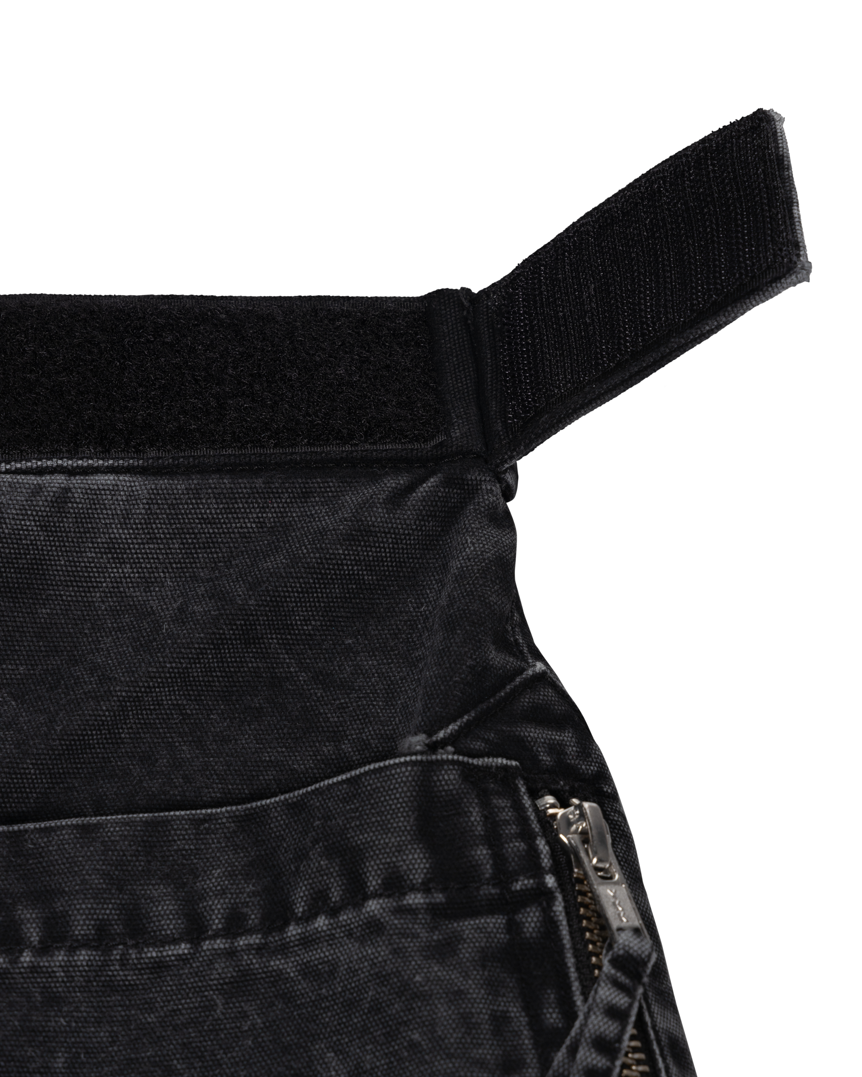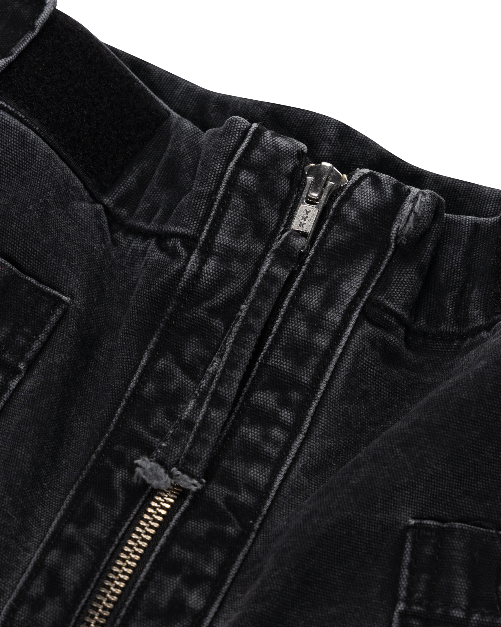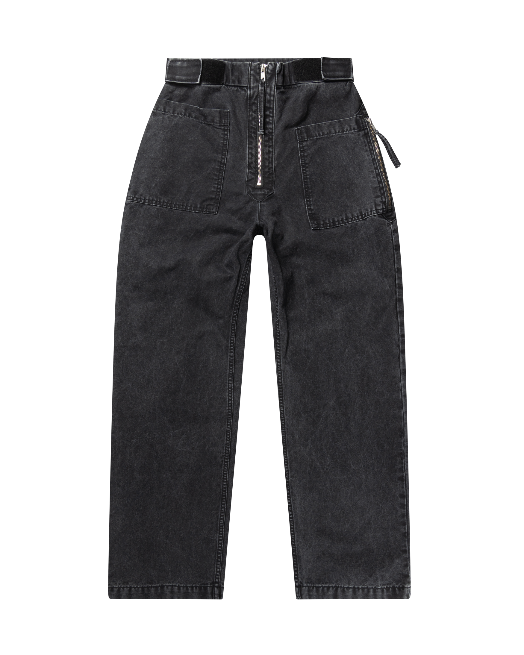 Enzyme washed, cotton canvas walking-style trousers with a chunky contrast front zip, velcro side tabs to adjust the waist and zipped side pockets. 100% cotton.