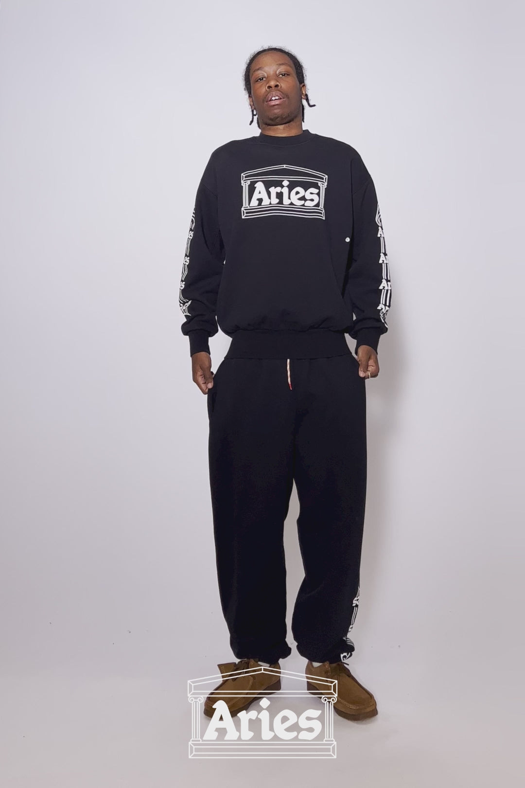 Unisex crew neck sweatshirt made from brushed-back jersey fleece. With a large Aries Temple screen-printed chest logo and Column screen-printed sleeve graphics. 100% cotton.