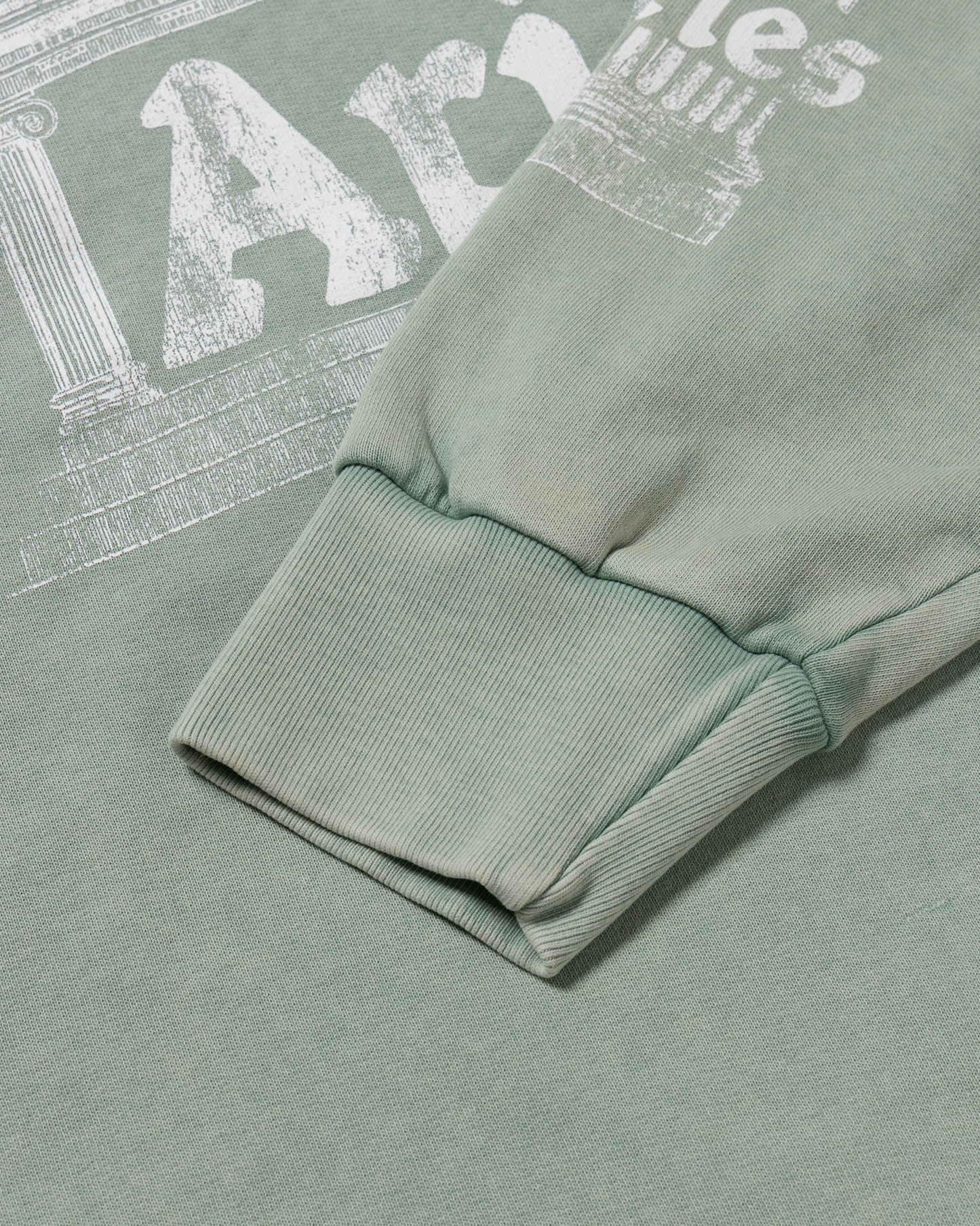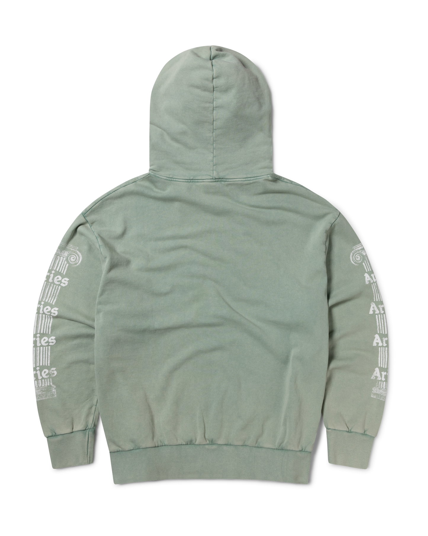 Hoodie made from brushed-back cotton jersey fleece, with Aries Ancient Temple graphic on front and Ancient Column graphics screen-printed on both sleeves. Finished with a heavy wash treatment for an aged look. Made in Italy.