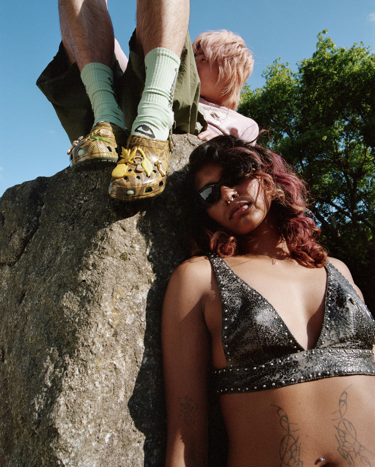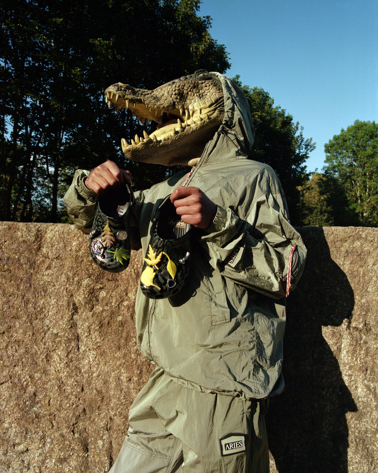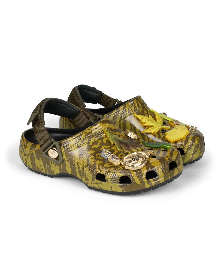 The Aries x Crocs Classic Clog arrives in two tonal camouflage styles. Inspired by an afterhours trip through the city, the collection includes custom limited-editionJibbitz charms that nod to urban artifacts.