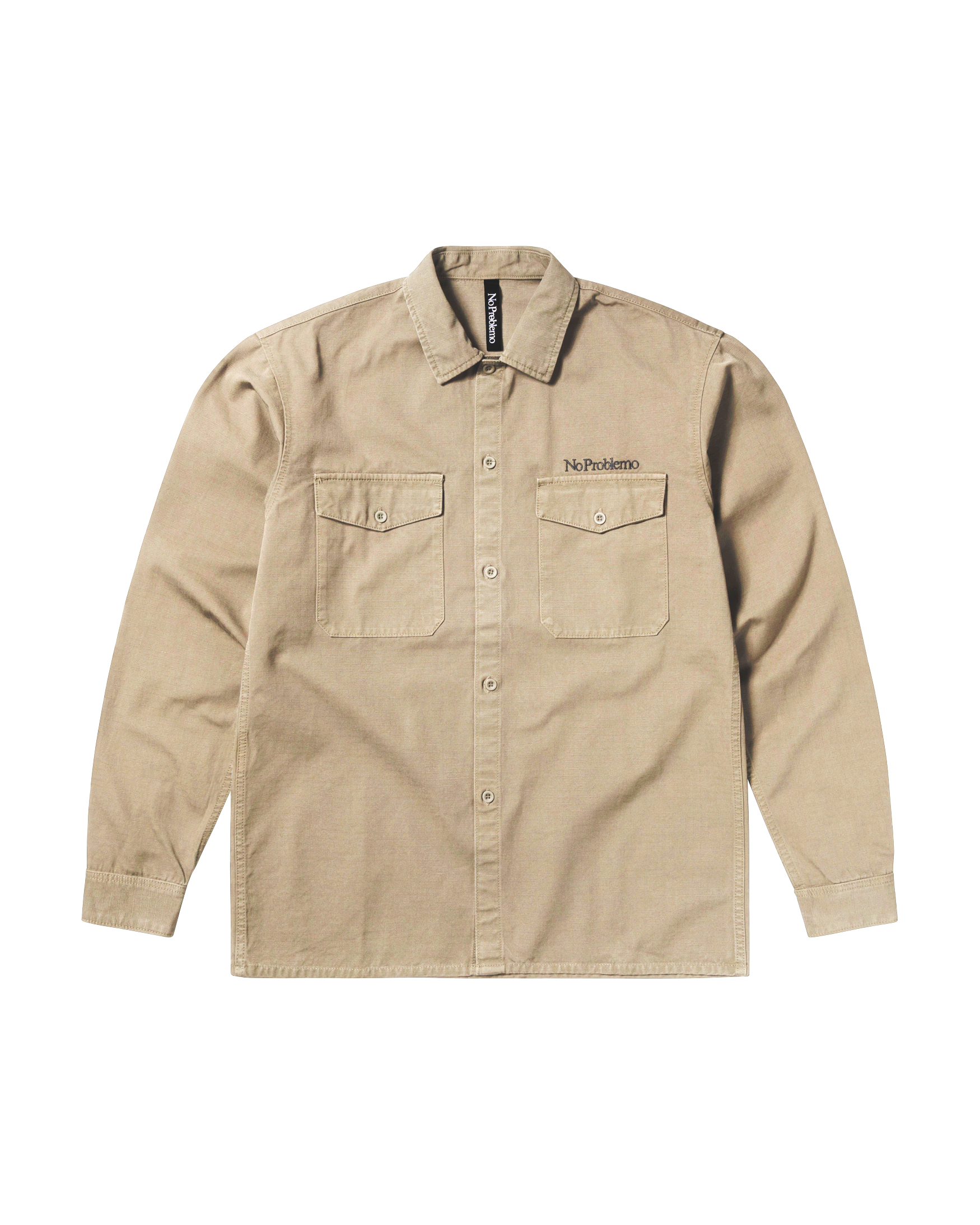 Unisex long sleeved uniform style shirt made from ripstop cotton with patch pocket on chest and a zip down the centre front.