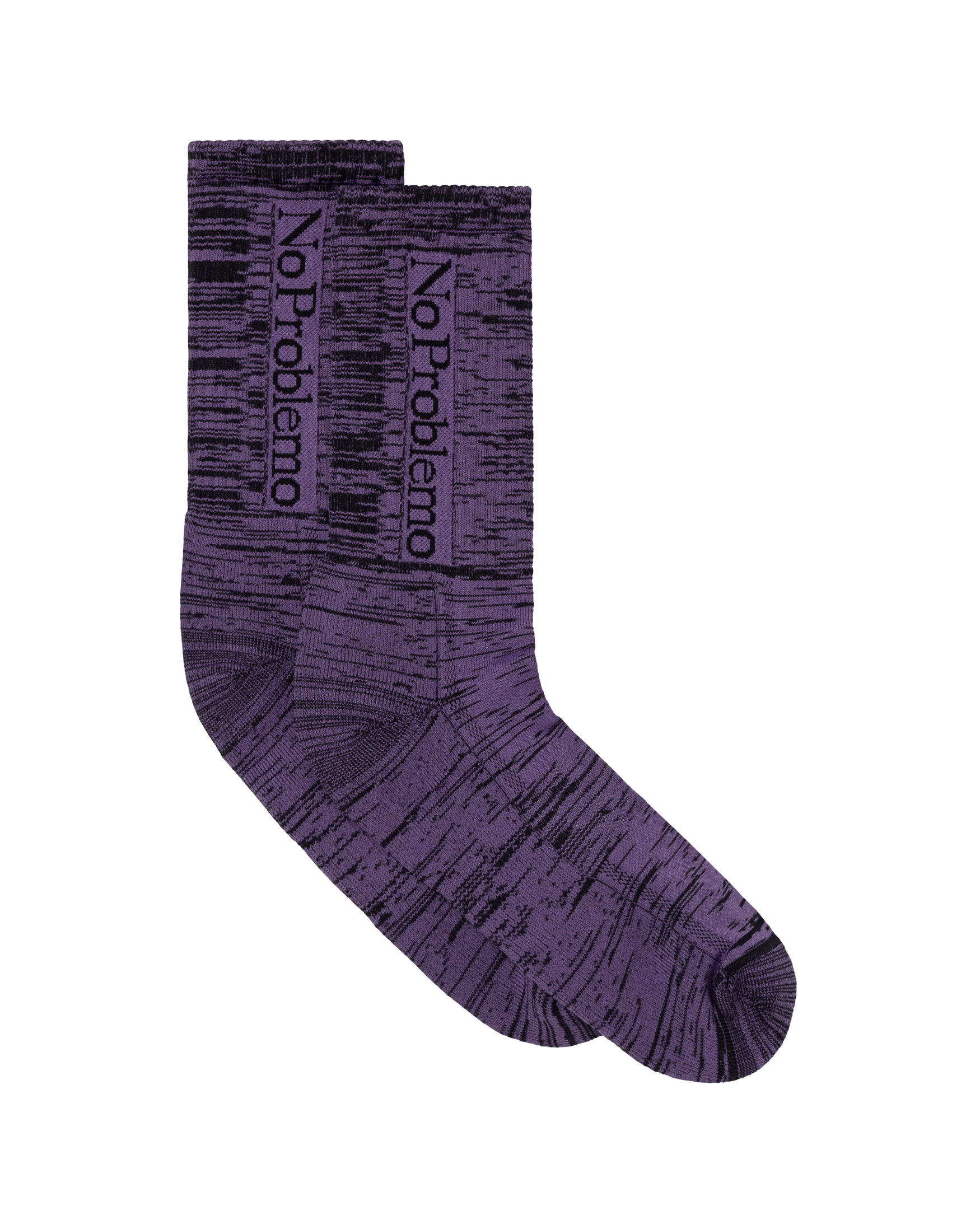 jacquard socks in a sports-blend mix yarn featuring no problemo graphic.