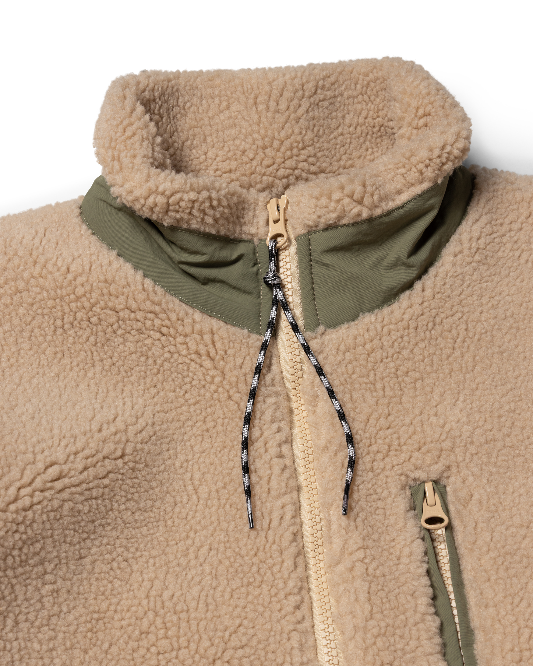 zip-through unisex heavy fleece jacket, with contrast nylon details and bonded mesh lining.
