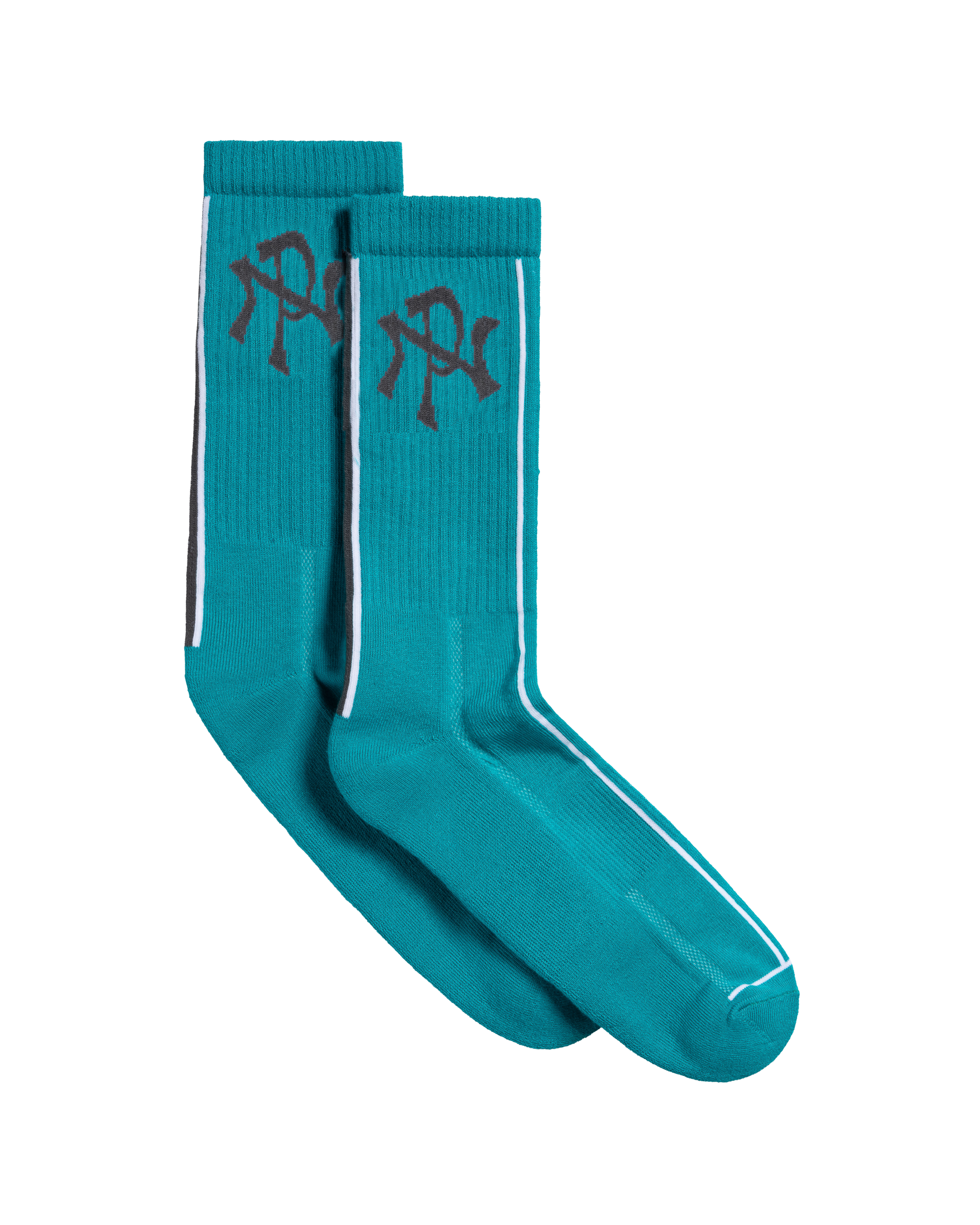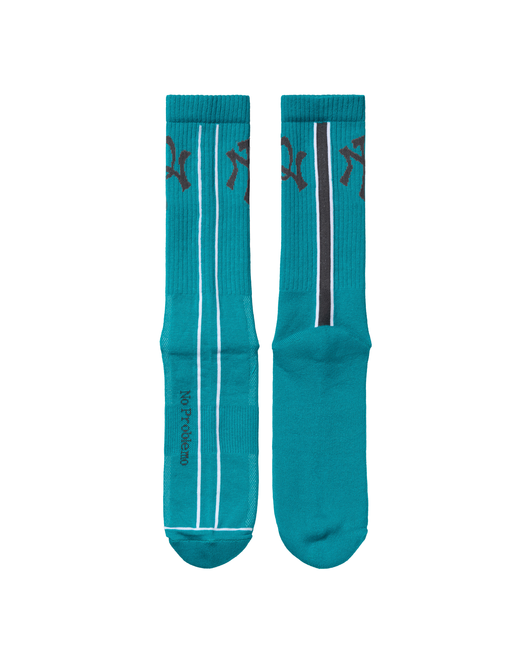 Jacquard socks in a sports-blend mix yarn featuring NYP graphic.