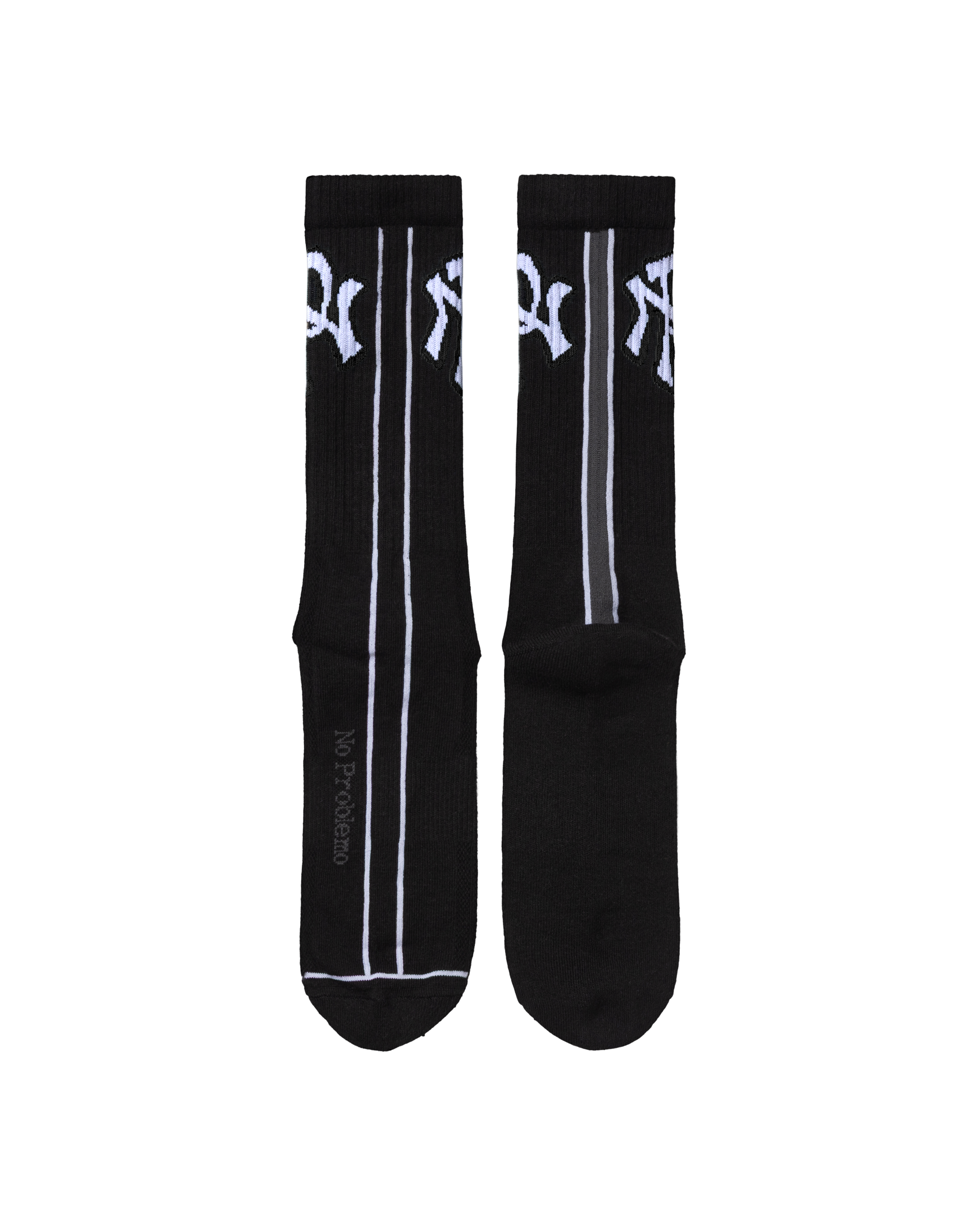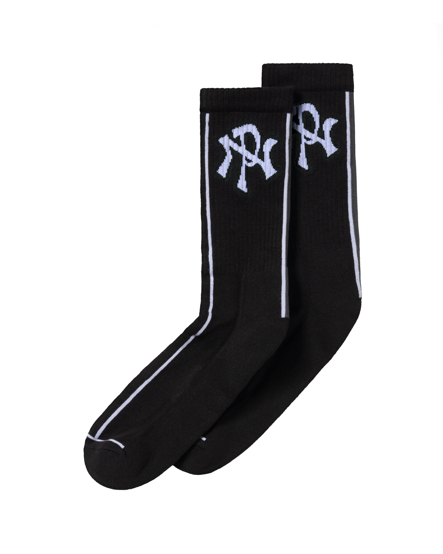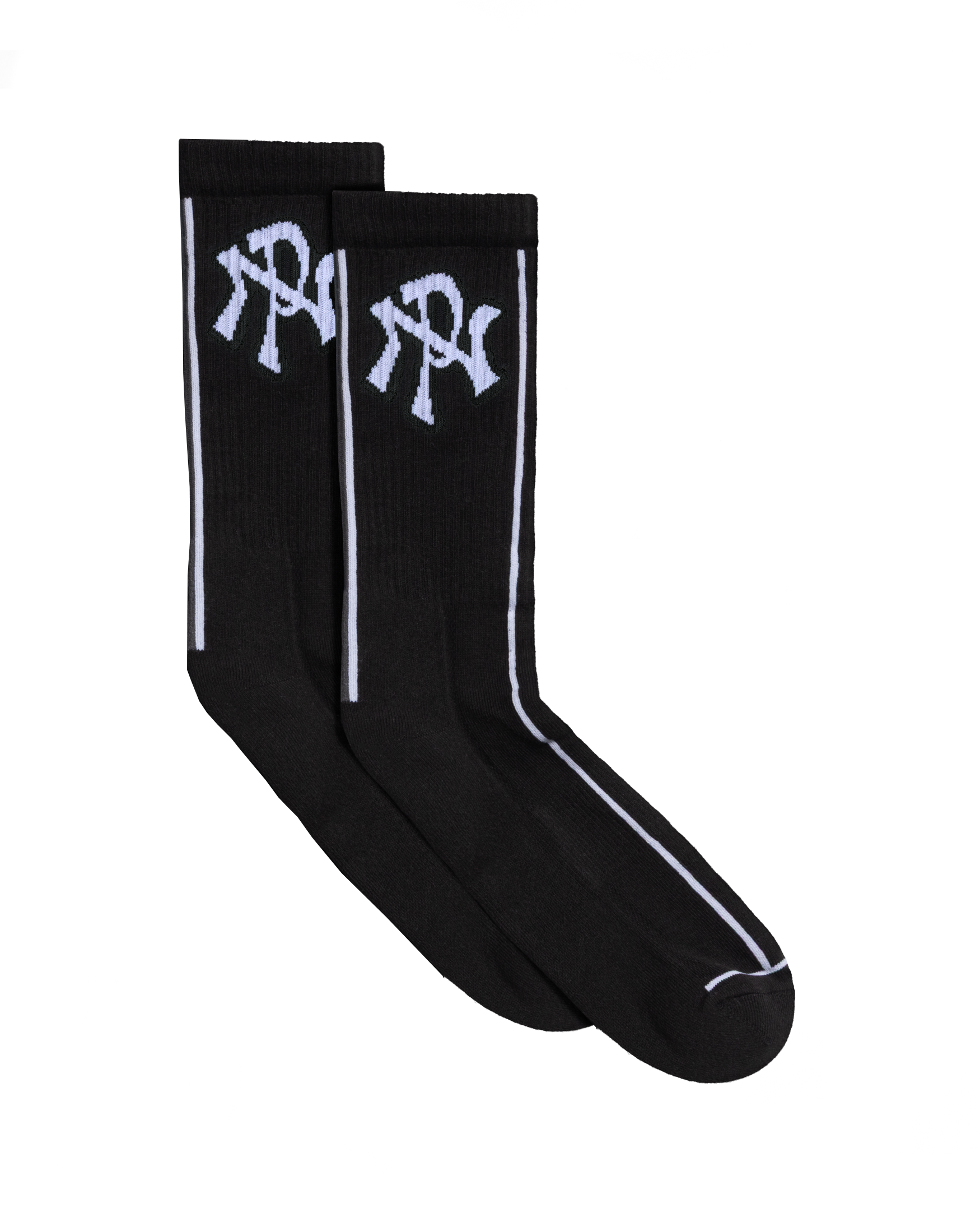 Jacquard socks in a sports-blend mix yarn featuring NYP graphic.