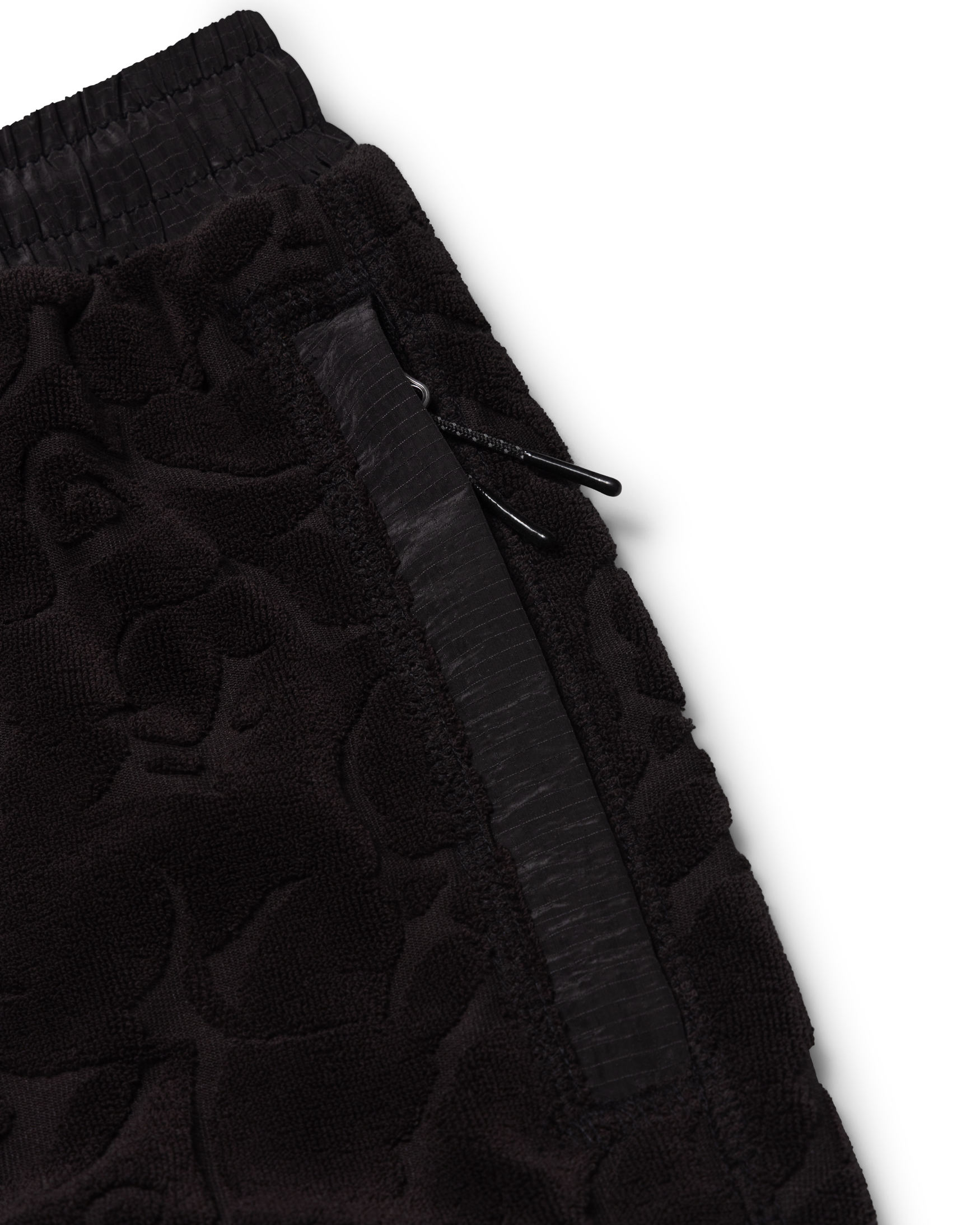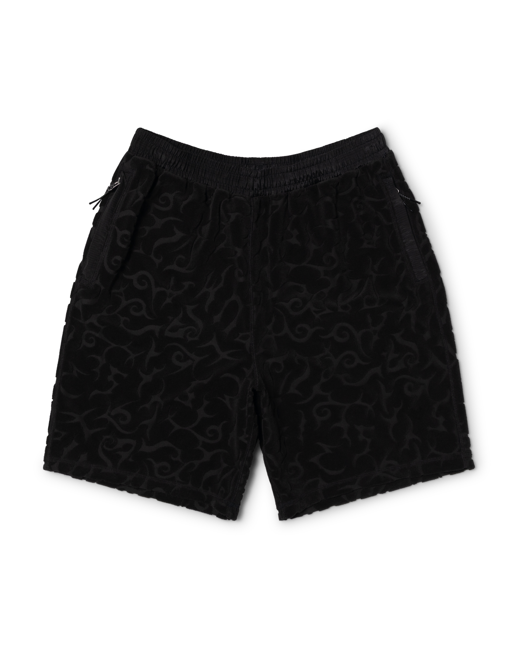 Shorts in an all over tribal jacquard towelling with an elasticated nylon waistband with internal bungee cord for an adjustable fit and zip pockets at side. Featuring a reflective logo print on the right back zip pocket. Designed for a relaxed fit.