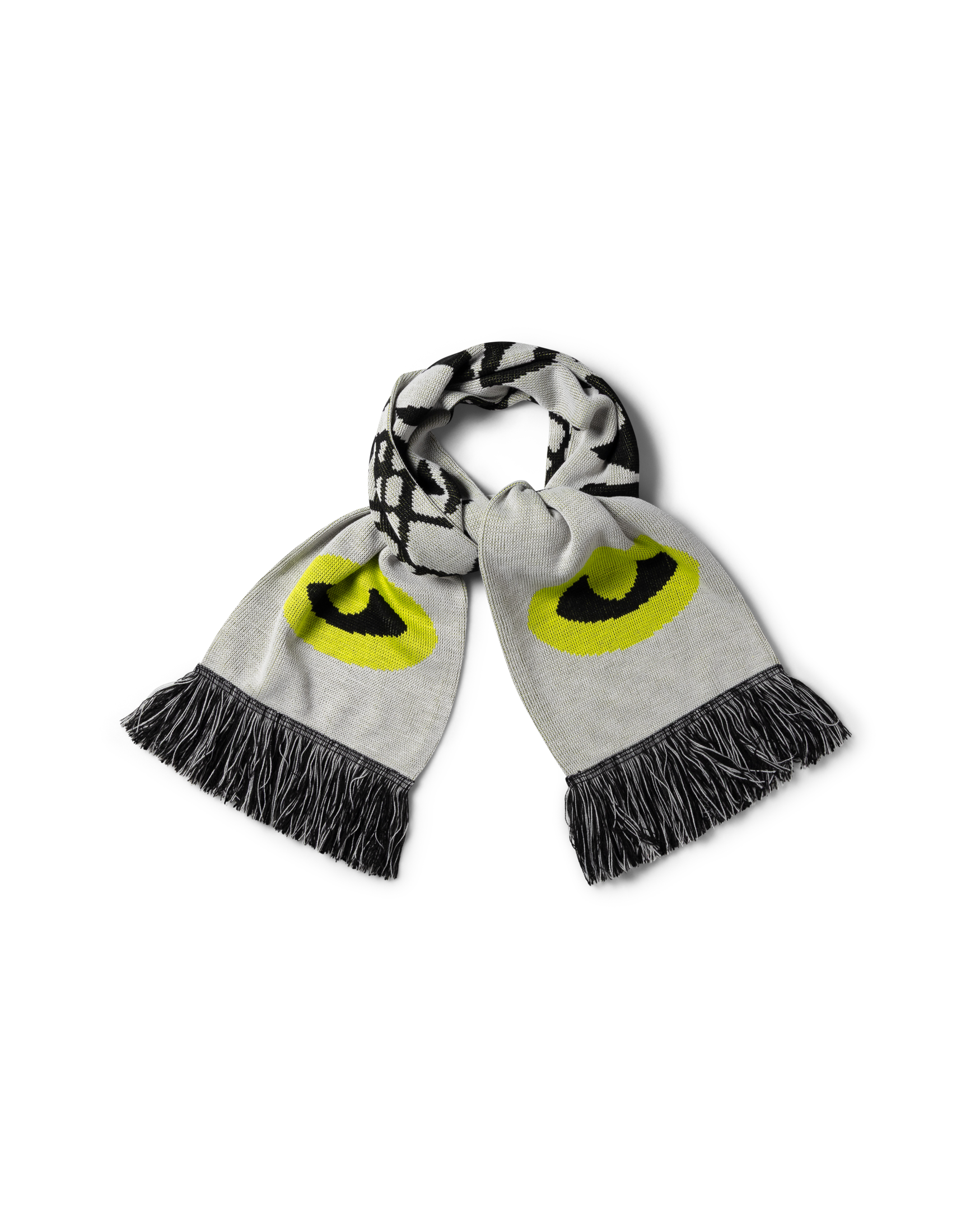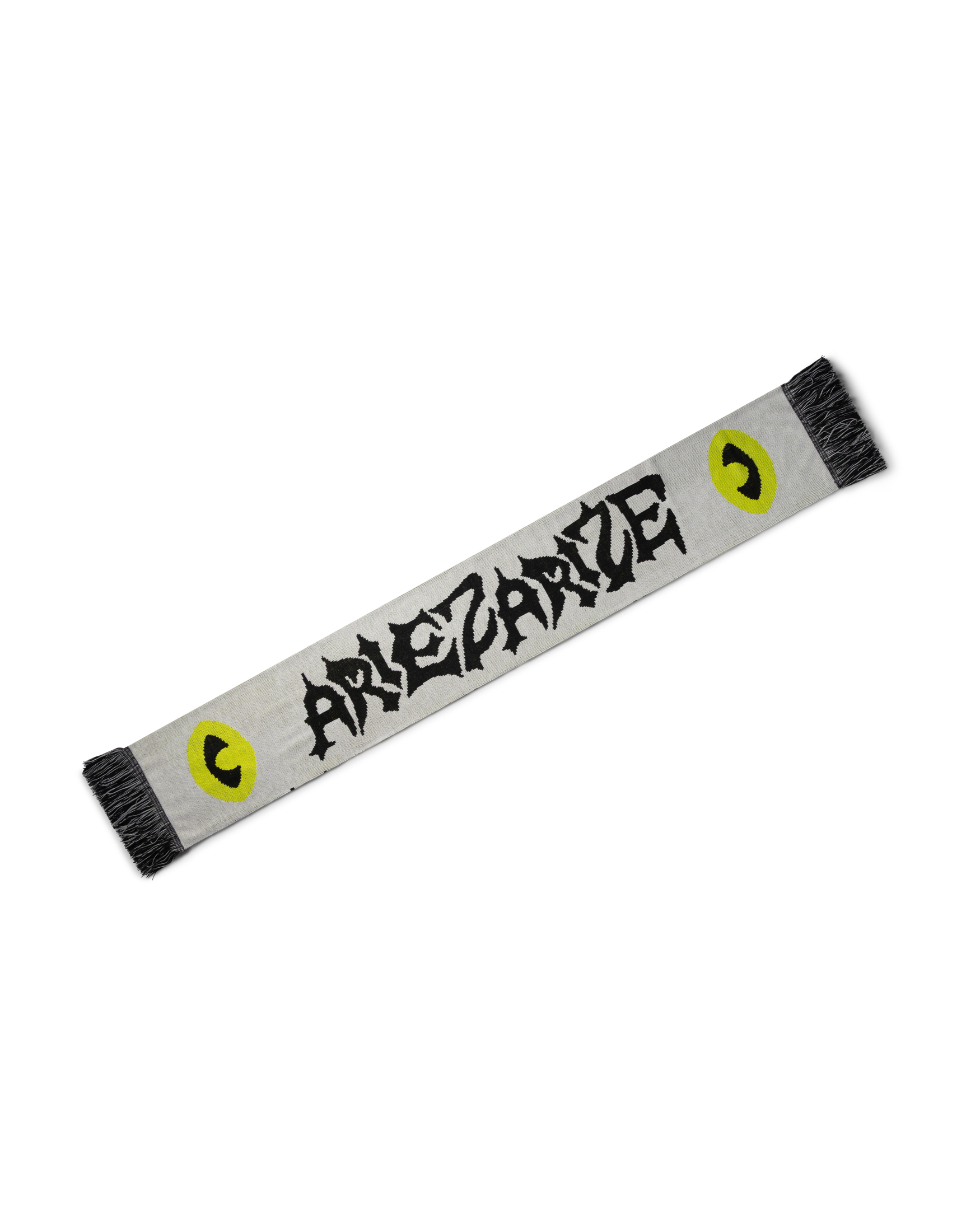 Sports style scarf with metal ariez arize graphic. 100% acrylic.