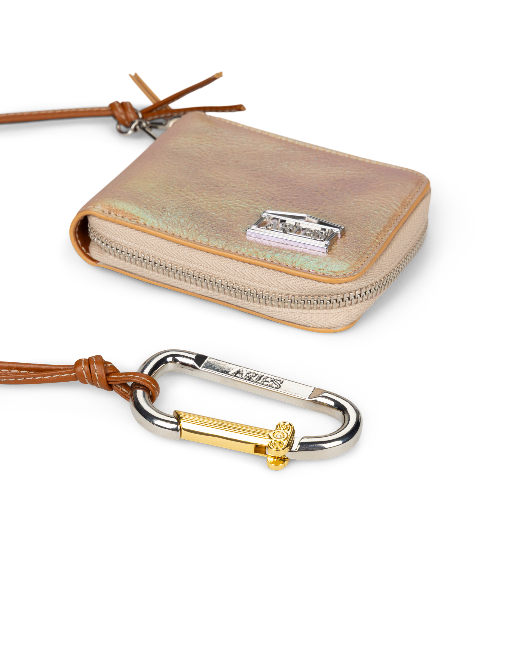 Pearl effect Leather Bobby Wallet, 100% cow leather with metal Aries temple.