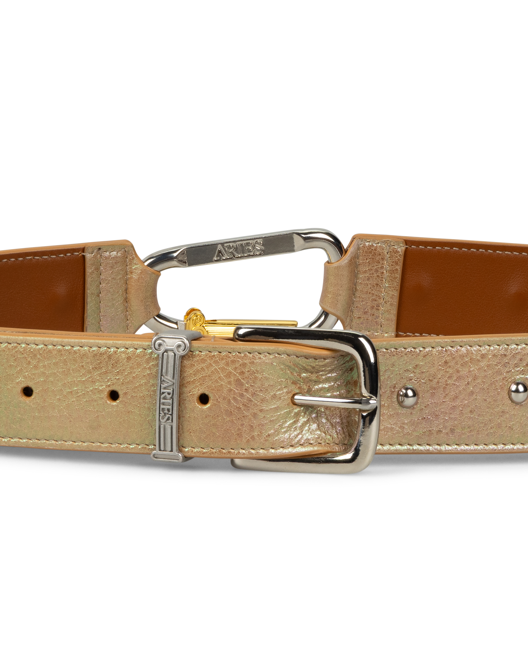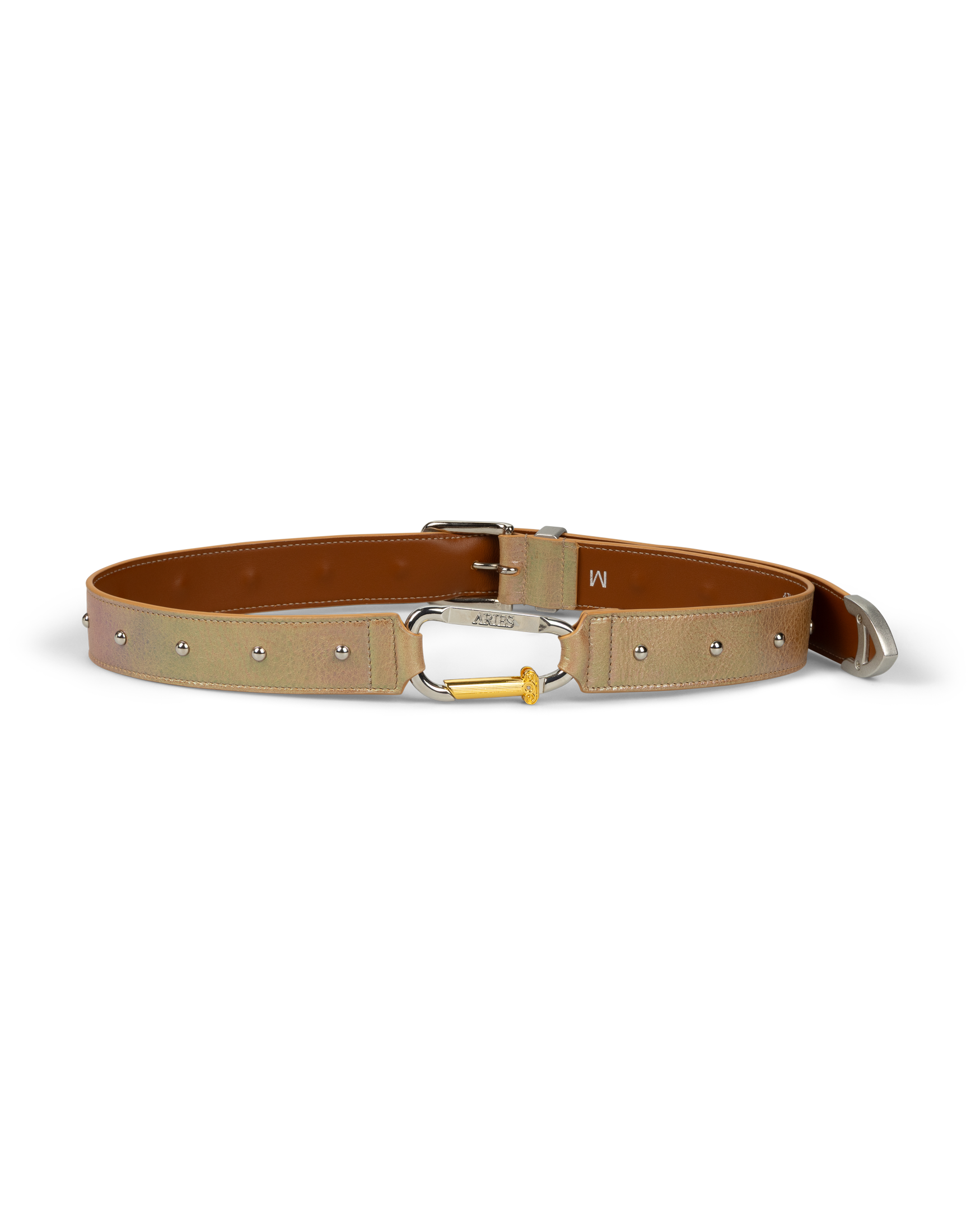 Pearl effect leather Mazzo Belt, with studs.